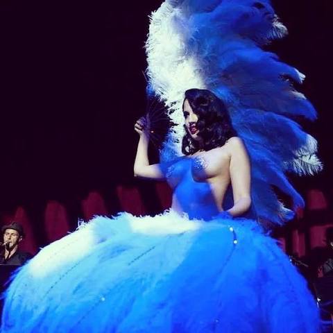 Lila Starlet pays homage to Classic Burlesque with her Ostrich Feather Fan Dance. Watch as Lila strips and then ends with just her 6 foot white feather fans covering her. A sparkling delight sure to dazzle and enthrall!